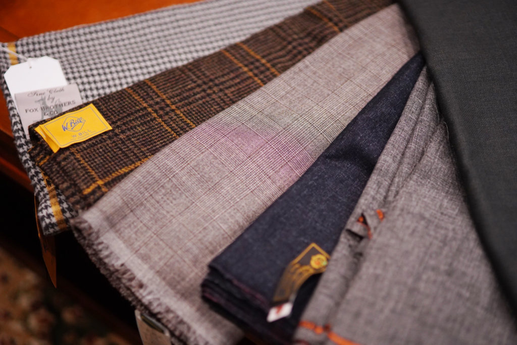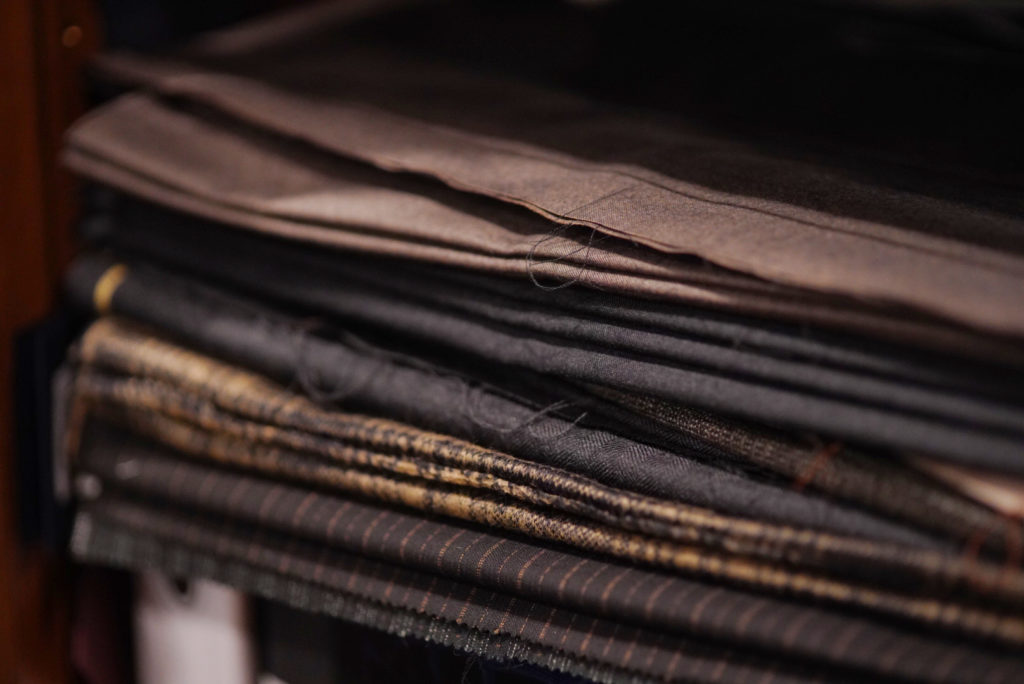 その中で生地屋さんと商談の際に弊社の仕立てに合う、クオリティが良い等の物は現物でお客様に見て頂けるように仕入れております。それがストック生地なのですが、通常よりも安く仕入れる事が出来るため良い物をよりお買い求めやすい価格でお客様に届ける事が出来ます。ヴィンテージの一点物から過去の生地サンプルの中からピックアップしております。