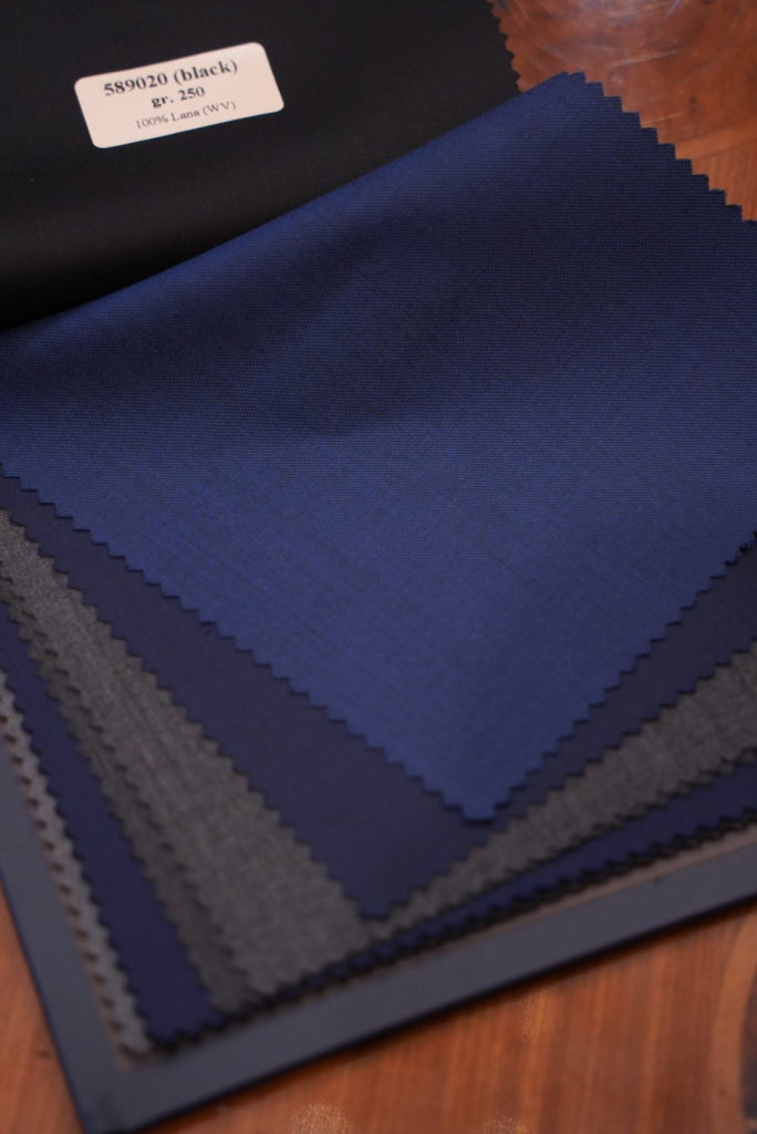 光沢があり滑らかでサラッとしているイタリアンファブリック、ハリ、コシがありしっかりした生地のブリティッシュファブリック。