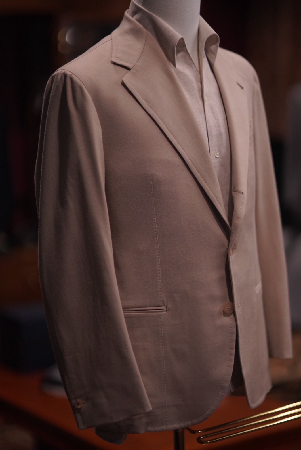 K様 シングルジャケット オーダー事例 K様よりご依頼いただいたシングルジャケットは、イタリアの高級生地マーチャントDRAPERS(ドラッパーズ)の「Golden Selection」コレクションから、クラシックベージュの生地を使用して仕立てられました。 このContinue reading "K様 シングルジャケット オーダー事例"