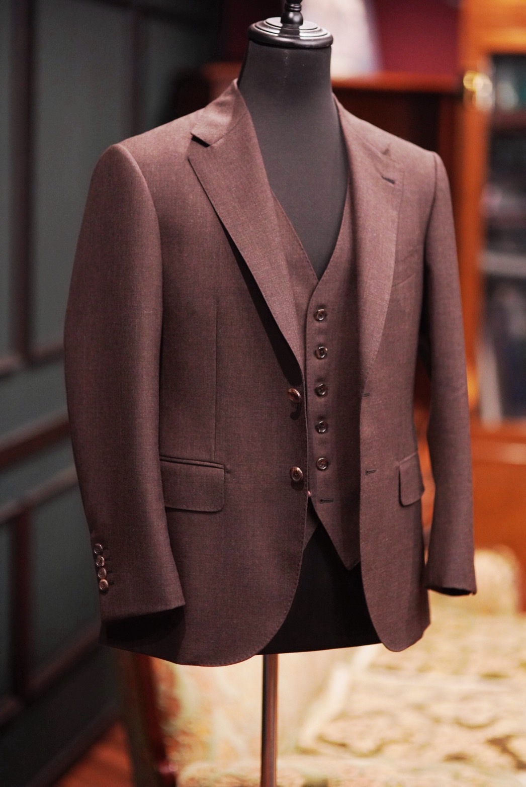 J様 スリーピーススーツ オーダー事例 【生地について】 英国老舗ブランド Harrisons of Edinburgh の名作コレクション「Frontier」を採用。 ハリとコシのあるしっかりとした生地感で、美しいシルエットを長時間キープ。 ダークレッドの深Continue reading "J様 スリーピーススーツ オーダー事例"