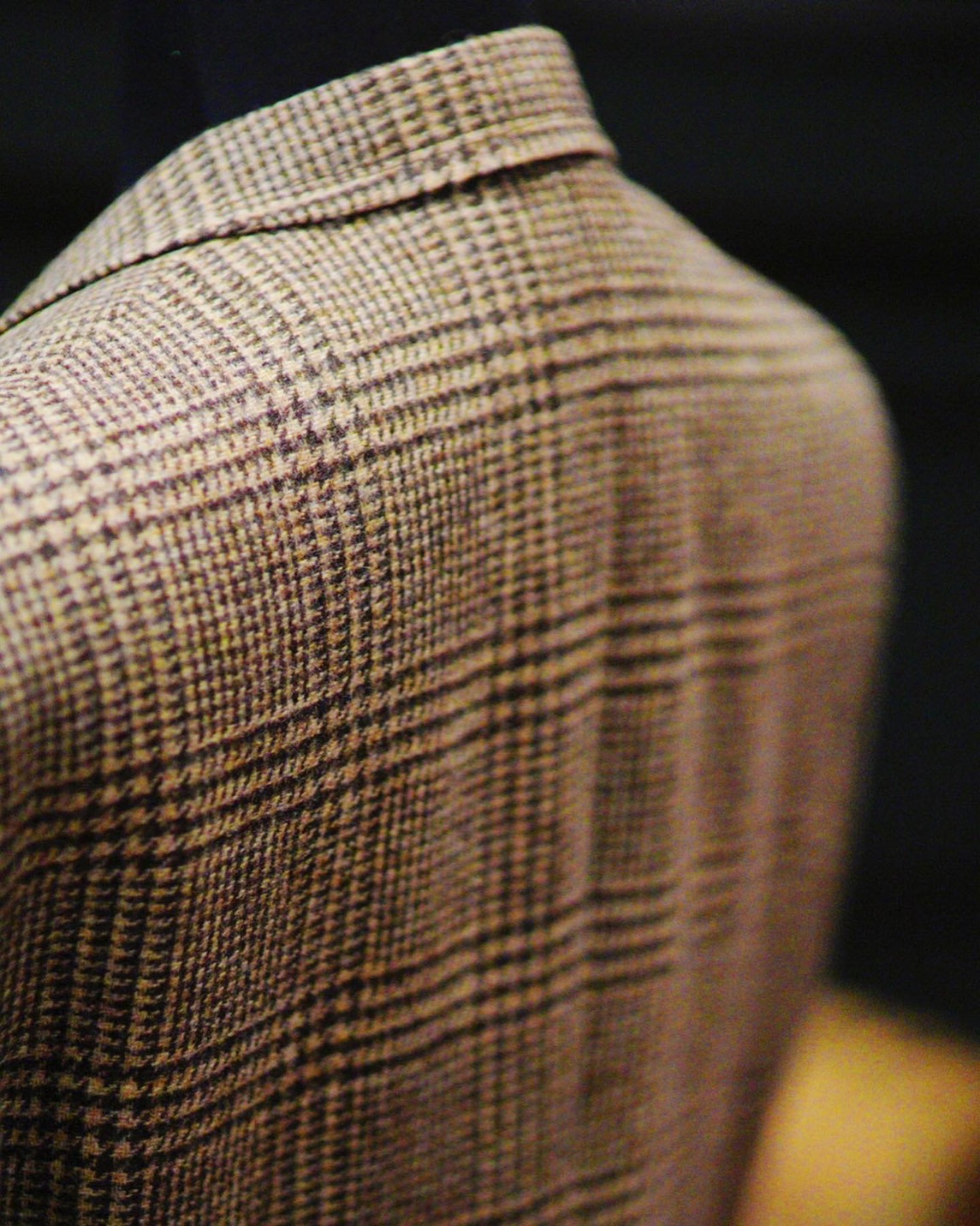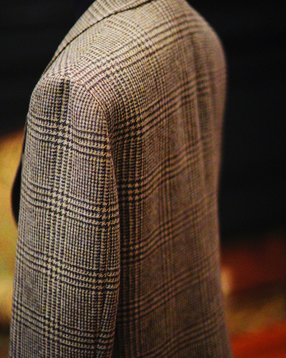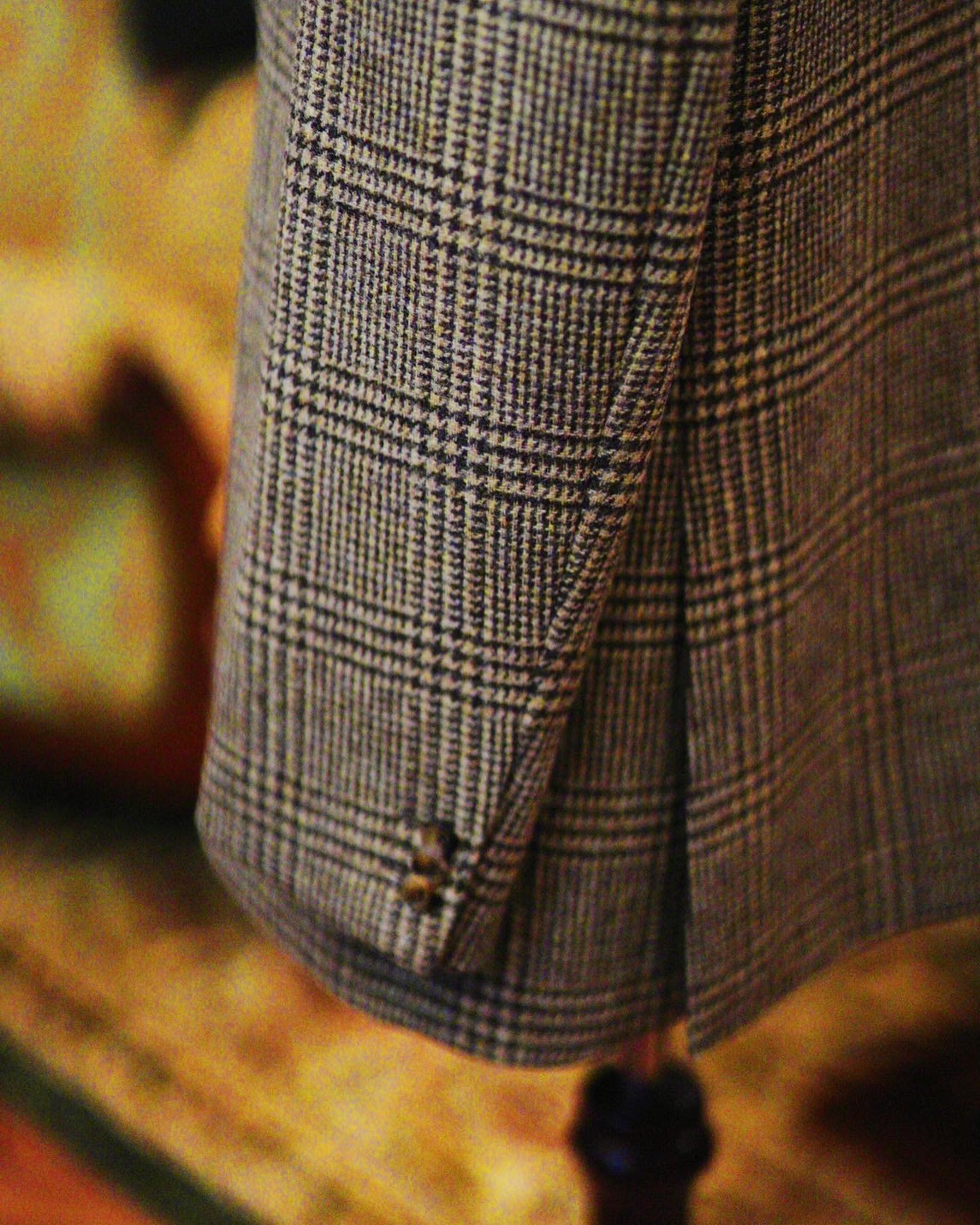 この度は、モダンでスタイリッシュな印象を演出するグレーチェックのシングルジャケットをご紹介いたします。