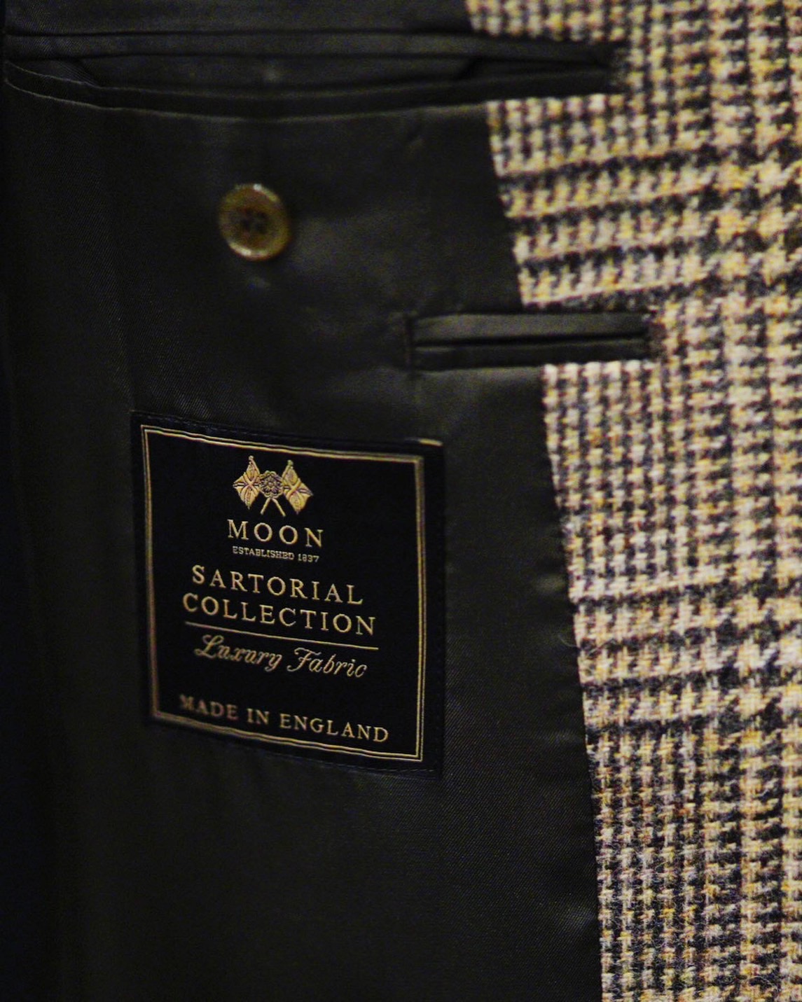 このスーツは、高級生地ブランドMoon Sartorial Collectionの素材を使用しており、その品質とデザインは一流の職人技とエレガンスが融合したものです。