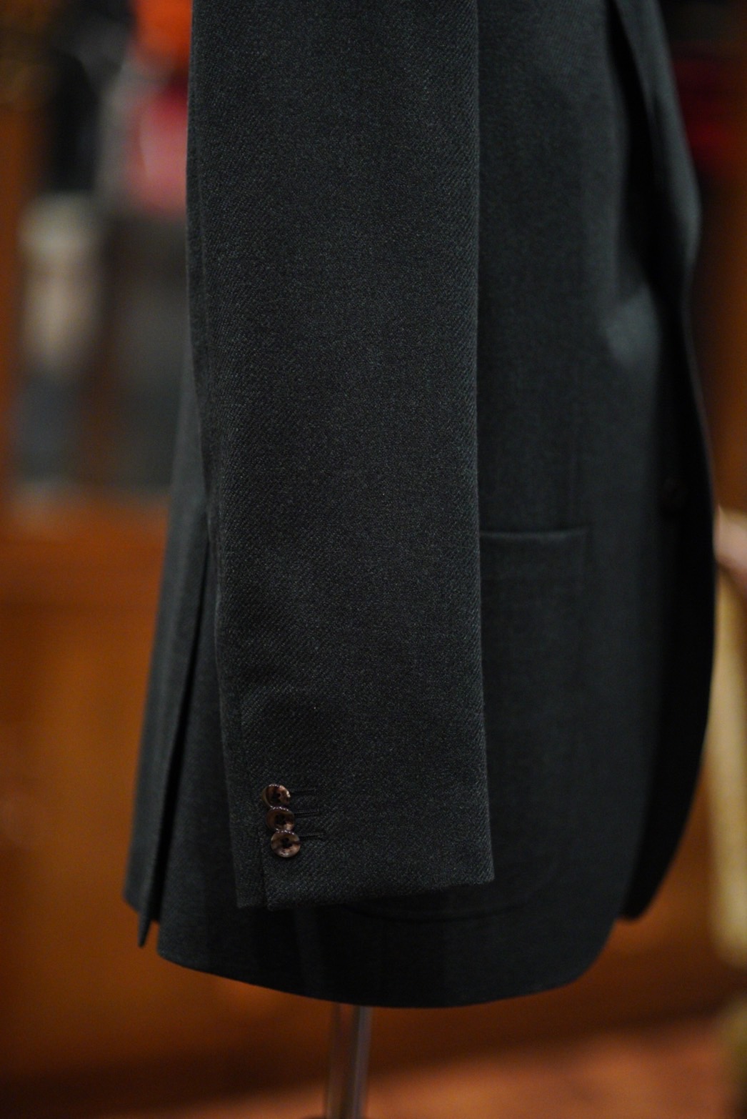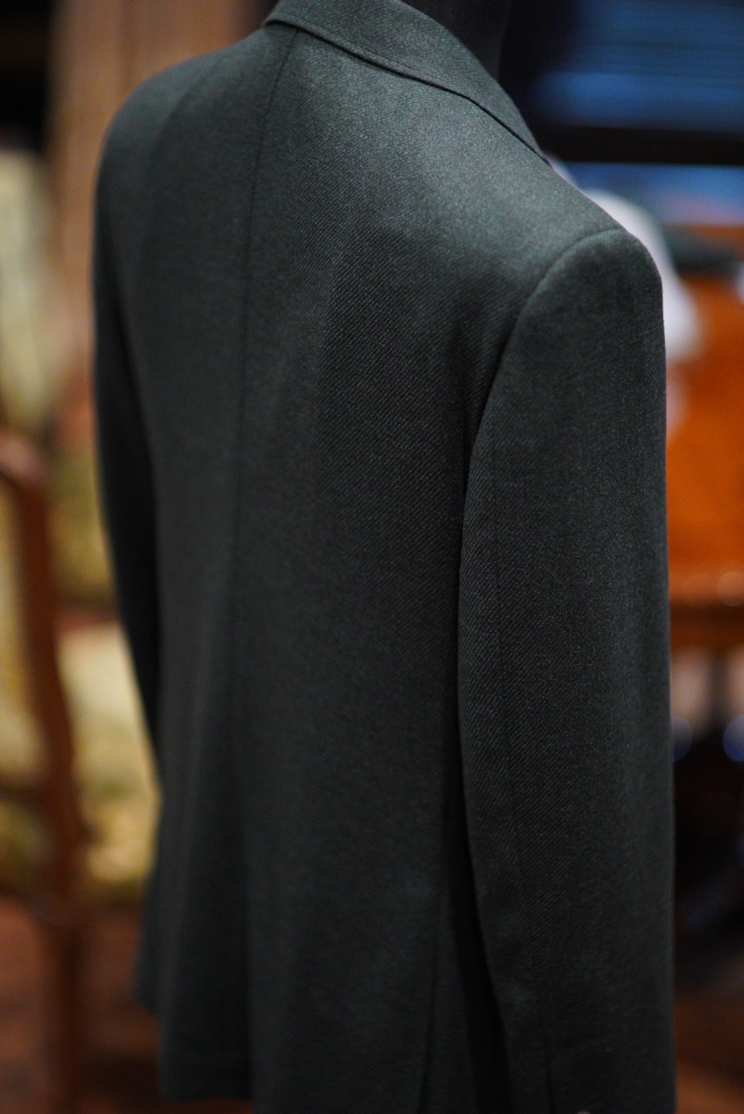 今回は、深みのあるダークグリーンを基調としたシングルスーツです。