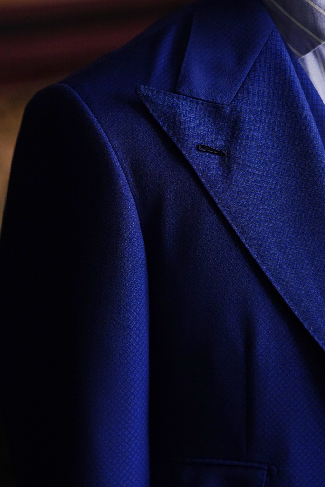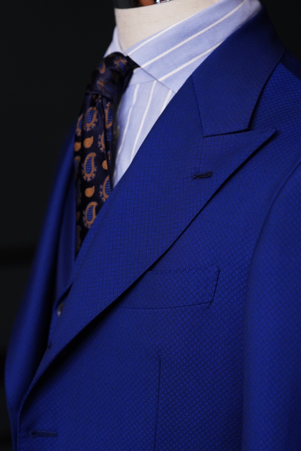 1日の大半をスーツで過ごされているおり、着心地や軽さがありつつもタイトなフィッティングをとご要望を受け仕立てさせて頂きました。