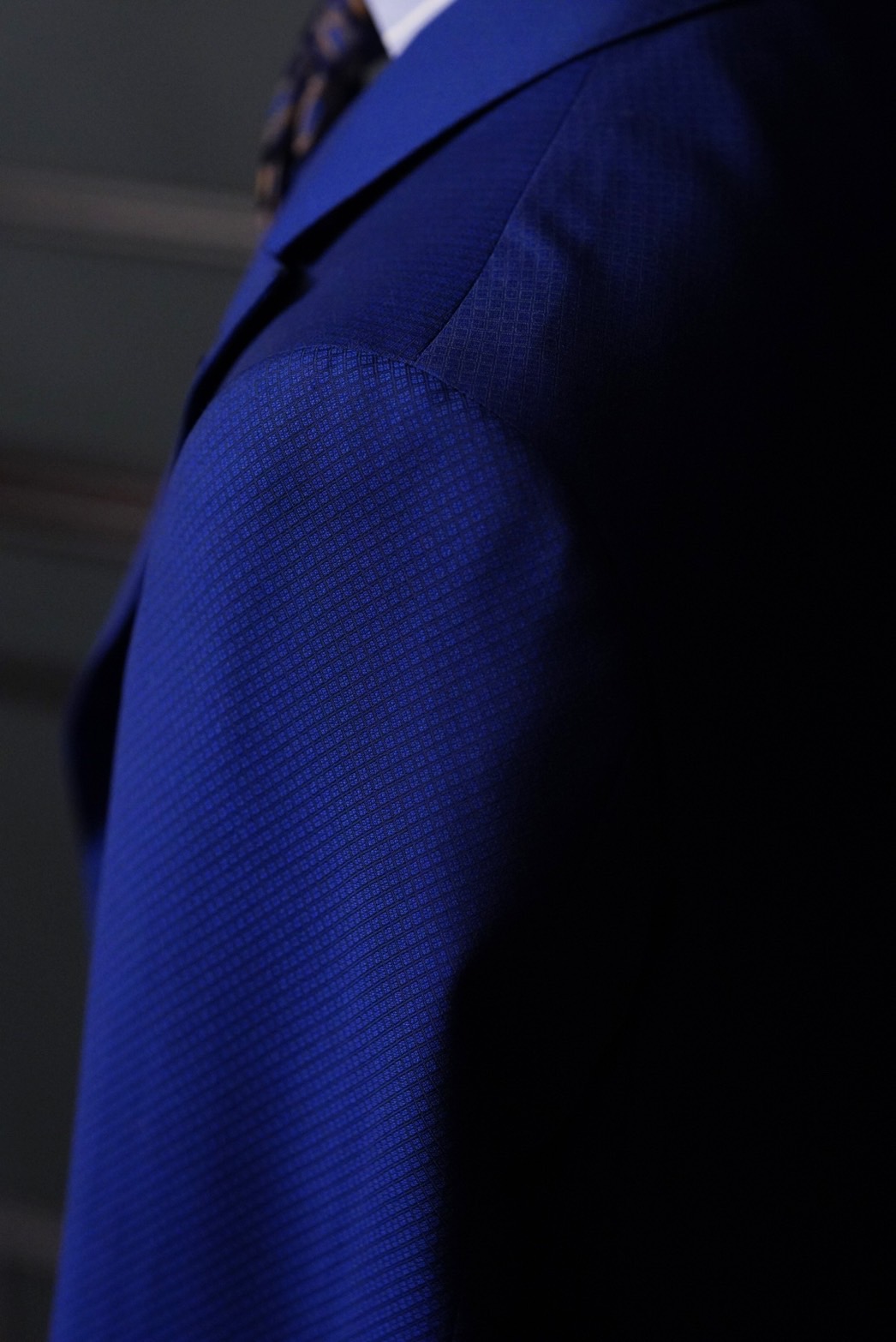 弊社のスーツは極力芯地等を薄くさせて頂いており「着てる」とゆう感覚より肩から首にかけて「乗っている」と感じて頂けるよう設計されております。
