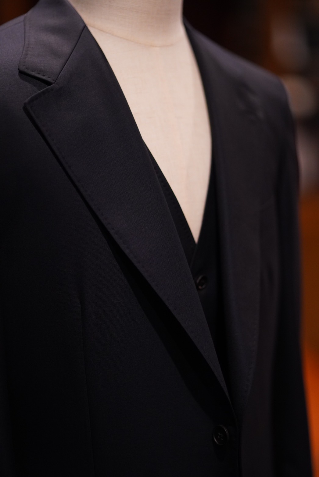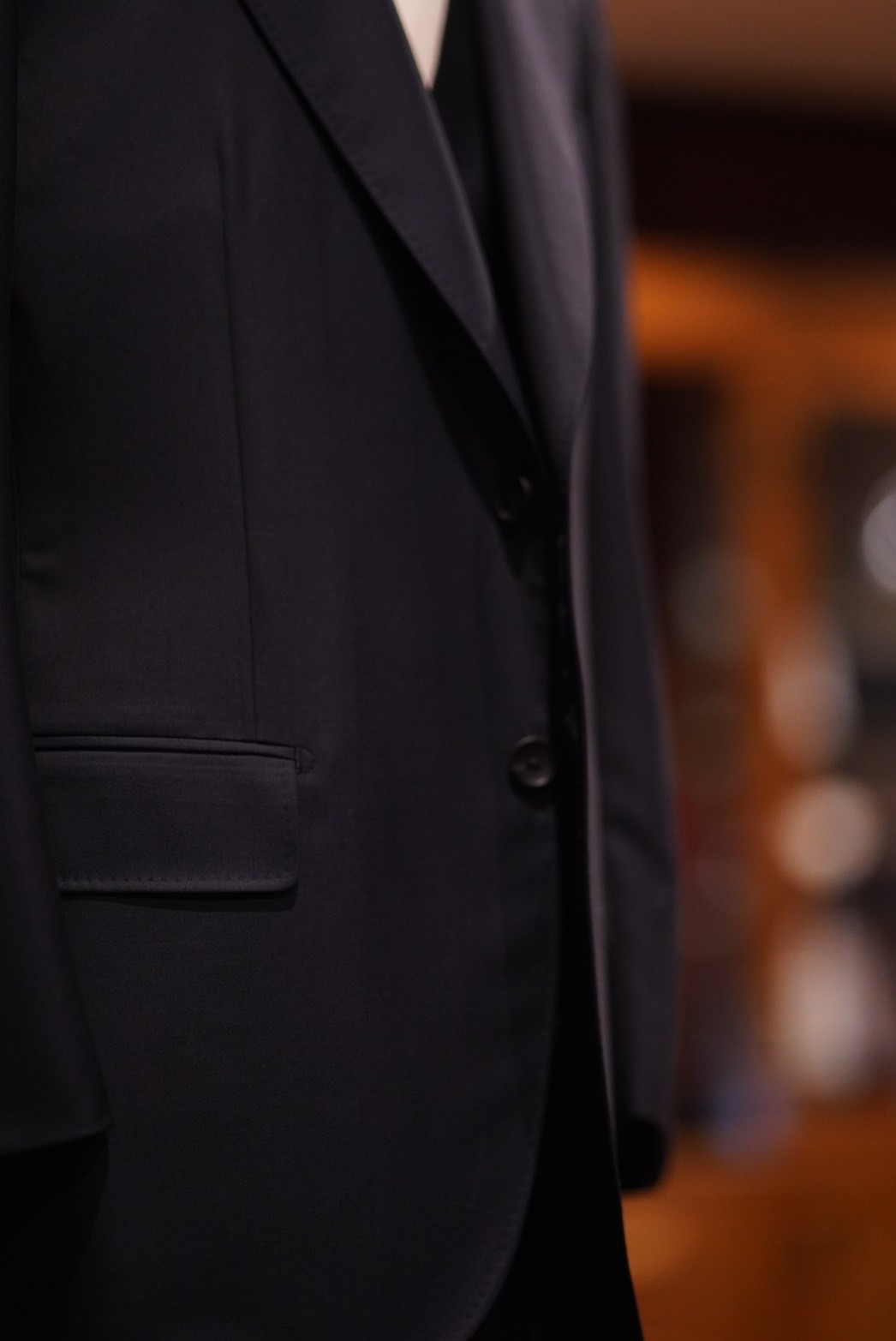高級服地の代名詞と言っても過言ではないZegna の15milmilで仕立てたシンプルなネイビースーツ。